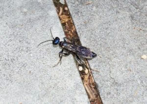 Top view of a mud dauber on the ground